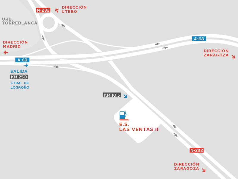 Frente a la estación de servicio Las Ventas 1, en la carretera de Logroño, Km. 10,500, encontrarás la estación de servicio Las Ventas 2, dentro de la red de Repsol y parte de nuestra cadena de estaciones de servicio desde al año 1971.